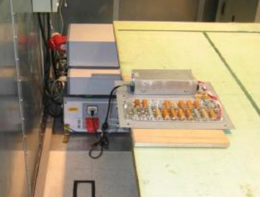 - این تست به نمایندگی سایر کاربرد ها اجرا میشود (مطابق با دستور العمل EMC). ما از بارهای مقاومتی ای که روی صفحه فلزی نصب شده استفاده میکنیم. در شرایط بار کامل و 50 درصد باری که در قسمت مشخصات مین ول ذکر شده تست انجام میشود.