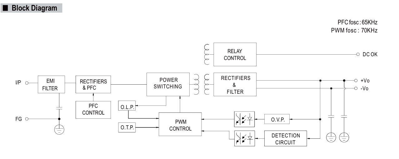 از دیگر ویژگیهای مهم این منبع تغذیه میتوان به مواردی همچون : حفاظت کامل در برابر اتصال کوتاه، اضافه ولتاژ، اضافه بار و افزایش دما، توان استندبای کمتر از 1 وات، ضریب توان بالا، دارای استاندارد ایمنی OVC III اشاره نمود.