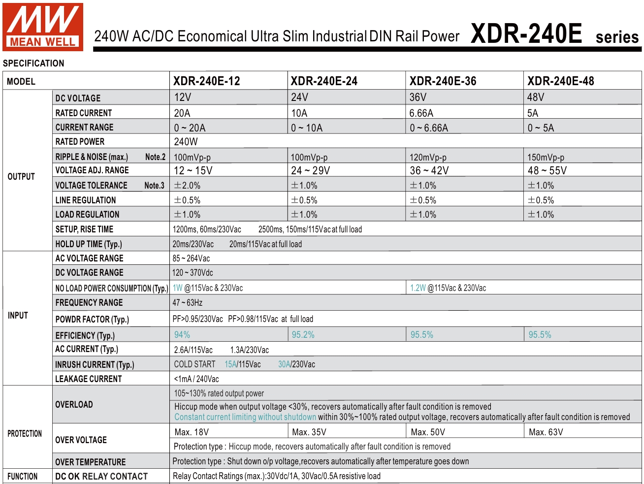 ویژگیهای منبع تغذیه ریلی XDR-240E-12