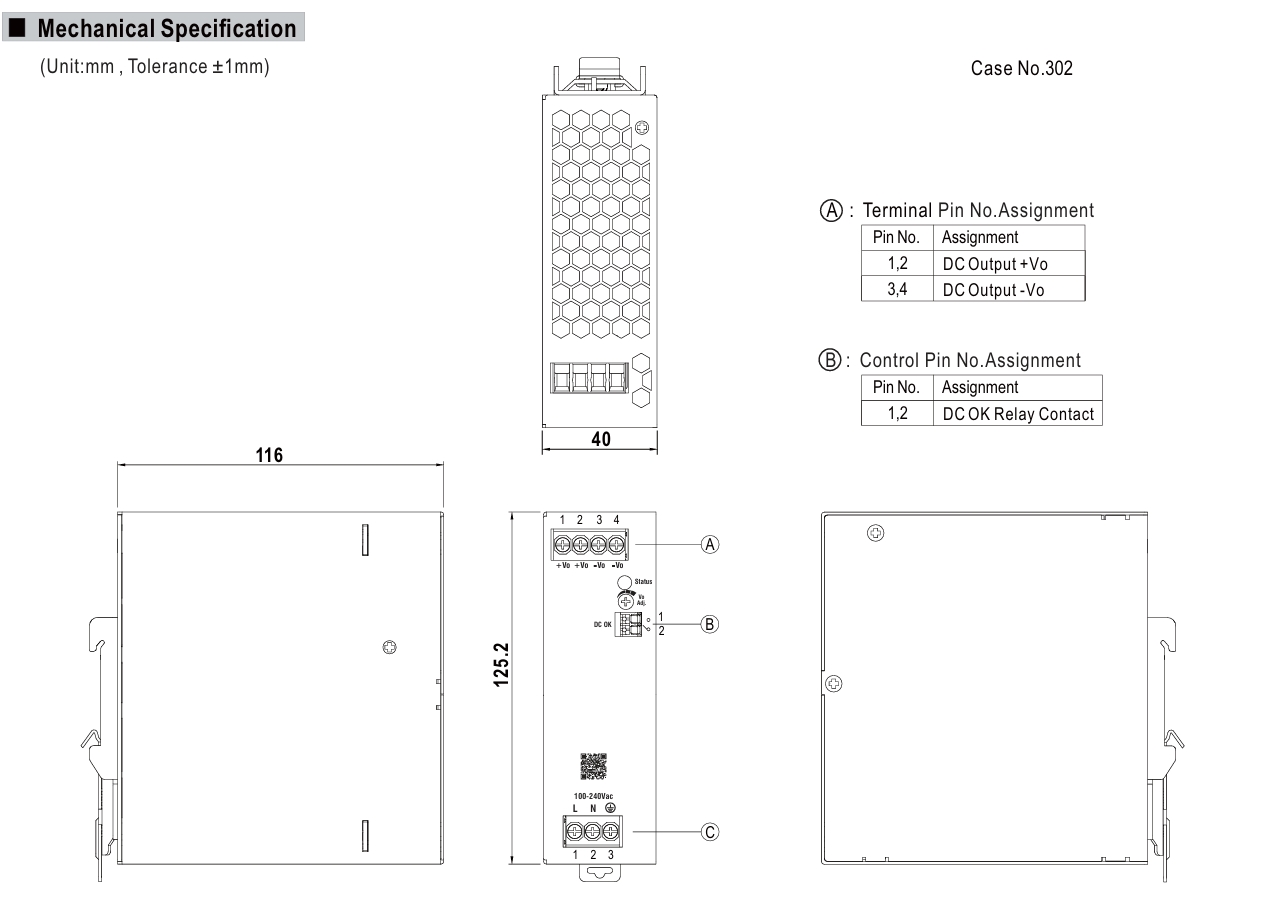 ابعاد باریک: 40 × 125.2 × 116 میلیمتر (طراحی Slim DIN Rail)