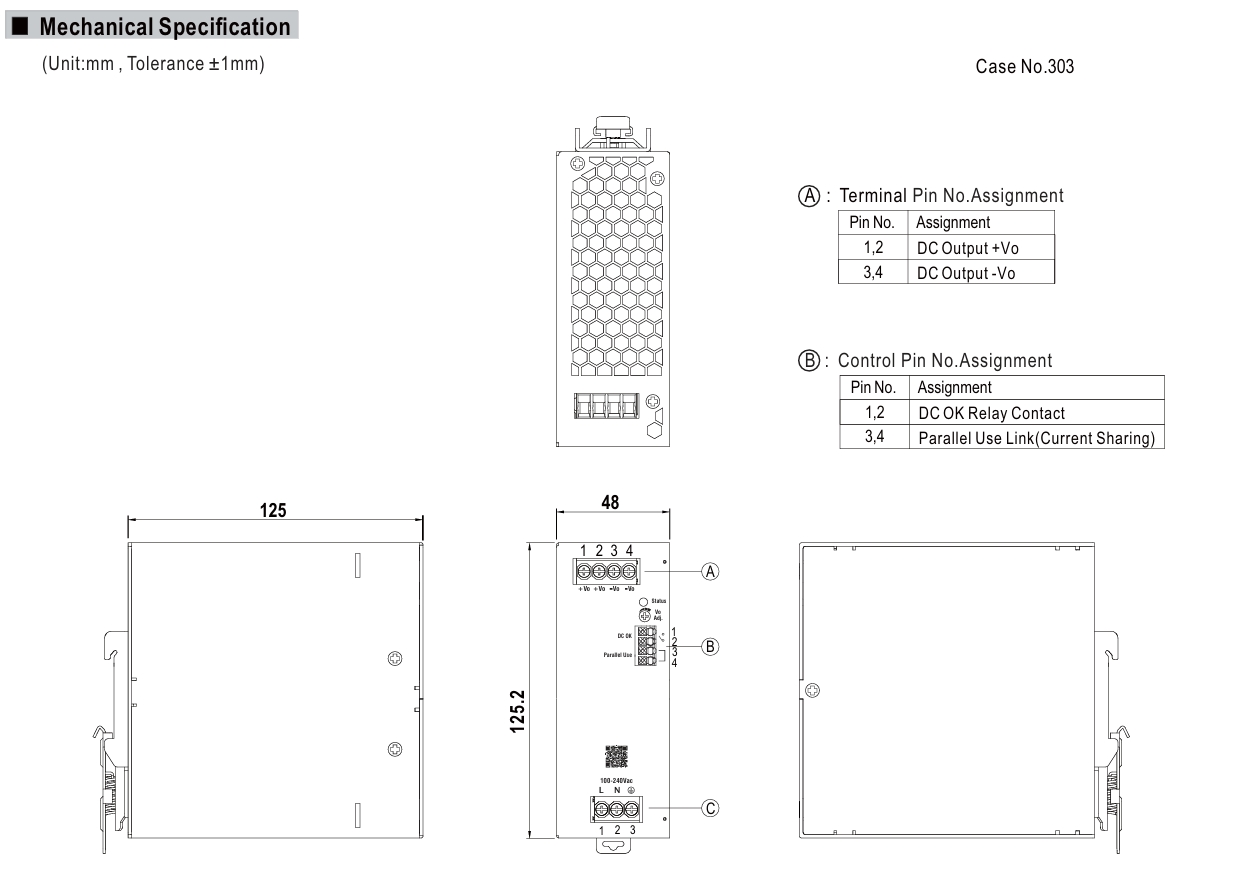یکی از قابلیتهای کلیدی این مدل، سیگنال DC-OK بهصورت کنتاکت رلهای (30VDC/1A یا 30VAC/0.5A) است که برای پایش وضعیت خروجی به سیستمهای کنترلی یا PLC متصل میشود. در صورت افت یا قطع ولتاژ خروجی، رله تغییر وضعیت داده و هشدار لازم به مدار کنترل ارسال میشود؛ ویژگیای حیاتی برای تابلوهای برق و سیستمهای اتوماسیون.