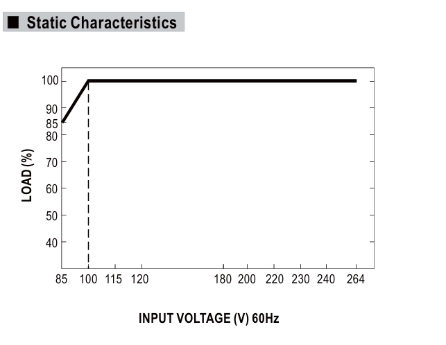 در هنگام روشن شدن، جریان هجومی ورودی محدود میشود تا از آسیب به قطعات و فیوز جلوگیری گردد. حداکثر جریان هجومی در شرایط 230VAC حدود 30A و در 115VAC حدود 15A است.