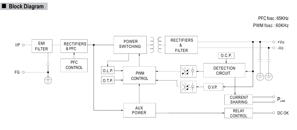 • سیگنال DC OK: کنتاکت رله‌ای 30VDC/1A یا 30VAC/0.5A برای مانیتورینگ وضعیت خروجی