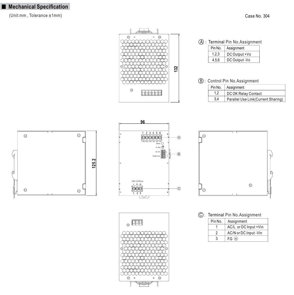 ویژگی‌ها: طراحی باریک 96 میلی‌متر / بدون فن (خنک‌سازی همرفتی) / راندمان تا 94.5% / سیگنال رله‌ای DC OK (30VDC/1A یا 30VAC/0.5A) / مصرف آماده‌به‌کار کمتر از 3.6 وات / قابلیت کار موازی تا 4 واحد (Droop Mode + Current Sharing) / عملکرد پایدار تا ارتفاع 5000 متر / رده ایمنی OVC III